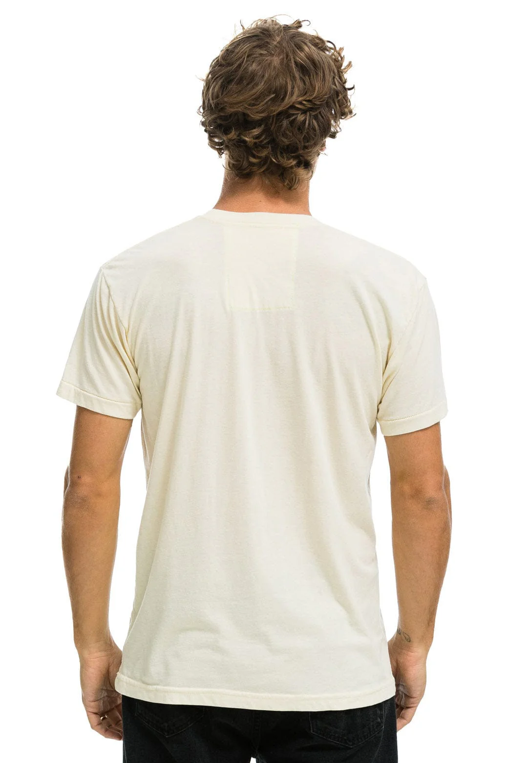 All of our products go through an intense breaking-down process that gives them a vintage feel you'll love because it's broken in from day one of wearing it. You're going to live in this tee.